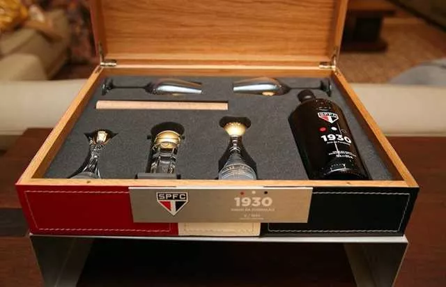 Trata-se de um presente valioso a quem aprecia vinhos e a quem coleciona prêmios. O São Paulo FC uniu tudo isso em um box elegante com duas taças de cristal, um pergaminho com as cortes do clube e um vinho do Porto safra da década de 30 com as réplicas em cristal dos troféus Mundiais ganhos pelo SPFC. O vinho marca o período de fundação do clube, que terá apenas 1930 caixas – ano que foi fundado o time de futebol tricolor paulista.