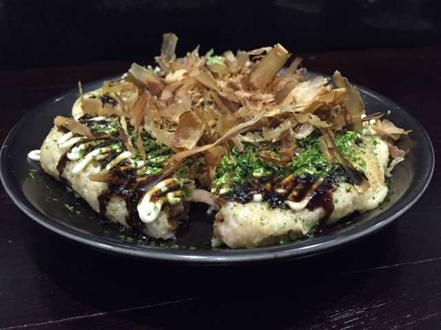 Outra aposta é o Shoyu zuke tamago – gema perfeita marinada no shoyu temperado com katsuobushi, acompanhada de cebolinha e gengibre – supersaboroso. Um prato que resalta aos olhos e paladar é a salada de polvo – o Takô Sumisô. Sobre os pratos quentes o destaque fica com o Okonomiyaki Osaka fu – panqueca com frutos do mar, legumes em massa cremosa coberta com molho adocicado e raspas de peixe seco – serve duas pessoas.