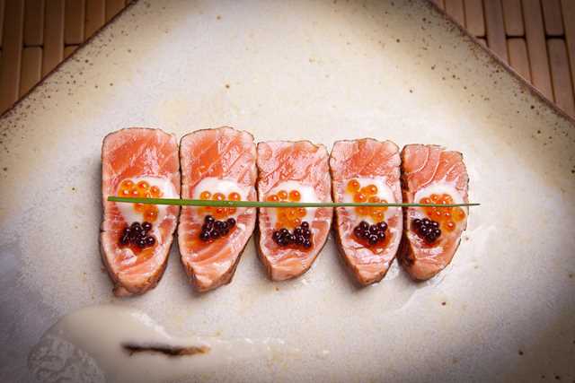 gastronomia que se come com os olhos. E também se trata de uma culinária que não se engana, principalmente pela matéria-prima e seus temperos. Cada tipo de peixe, cada vegetal, tudo é trabalhado com atenção, mãos firmes e primor. Todos os detalhes são minuciosos ao montar e apresentar o prato singular, que nos encanta aos olhos e paladar.