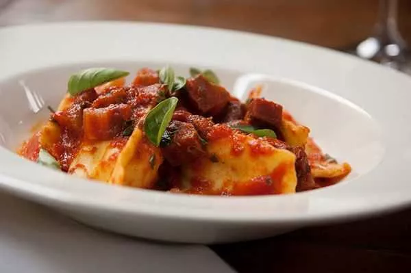 | Agnolotti di Muzarella e Lonzino al Pomodoro, Basilico e Rosmarino |