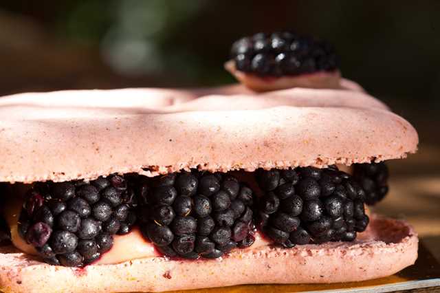 | Sobremesa de macarrons de amora |