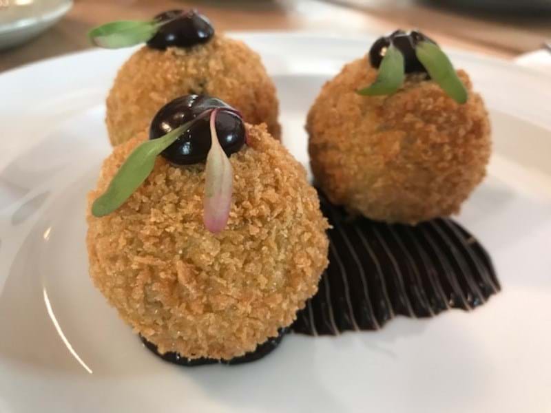 Como entrada as sugestões são: O crocante Arancini funghi e tartufo (R$34,00). Bolinho crocante de apresentação atraente é feito de arroz italiano recheado com cogumelo porcini, trufa negra e muçarela de búfala sobre aioli de alho negro.