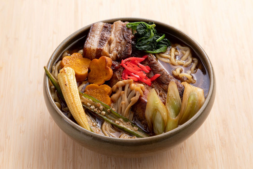 Ramen Ikigai: inspirado no sukiyaki e em Okinawa, o prato foi criado pelo ramen master Takeshi Koitani e pelos chefs Thyago Anasawa e Jana Costa, do Jojo Ramen. Tem caldo composto de porco, frango e dashi: é delicado e, ao mesmo tempo, potente. O macarrão é temomi (ondulado) e mais leve. O destaque é o Rafute, barriga de porco cozida, típica de Okinawa, preparado com um toque de Awamori (bebida regional). Para completar, o ramen vem com costela suína, minimilho, quiabo grelhado, cogumelo enoki, cebolinha naganegui e abóbora defumada. De acompanhamento, há espinafre horenso e gengibre agridoce (gari shoga).