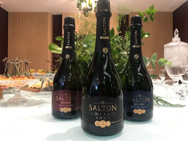 O primeiro brinde começou com os espumantes Salton Ouro, que acabou virando uma linha super especial, agora traz o rótulo Extra Brut como lançamento, que ganhou o nossa atenção e paladar. Acidez deliciosa, notas de panificação e toque de mel. Impressionantemente bom.