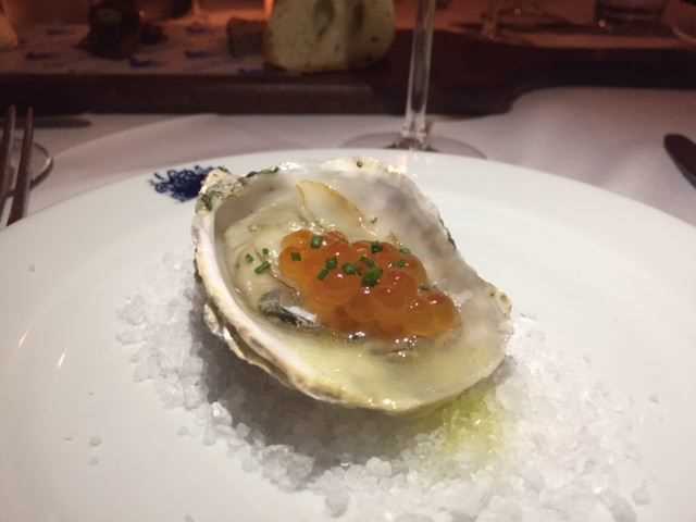 O menu é sortido de contrastes e texturas no paladar e o vinho cai como uma luva para cada prato. O Amuse-bouche (aperitivo) abre o menu com uma ostra com limão siciliano confit e ikura ( ovas) – harmonizado com o espumante Jeanne de Coste Blanc de Blanc ( França) – C’est superb!