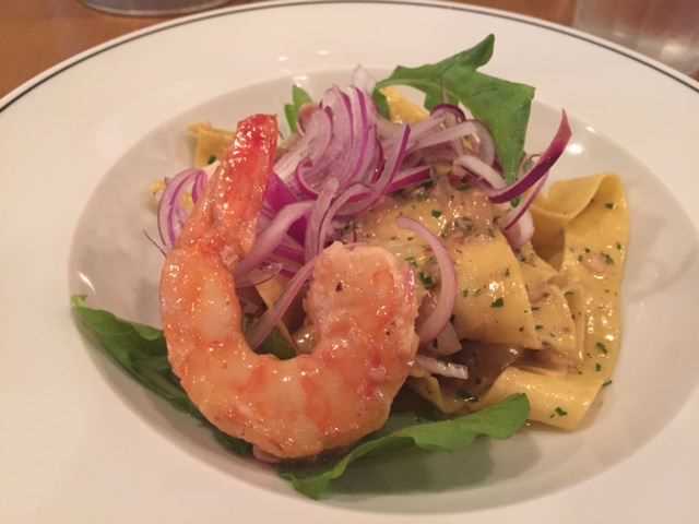 Em seguida com ares mediterrâneos, o primeiro prato trouxe estrutura, cores e delicadeza com o Papardelle com frutos do mar. Leve, a massa é feita na casa e o vinho escolhido para fazer companhia é o italiano frutado e de boa acidez - Vernaccia di San Gimignano, Cesani – bela dupla.