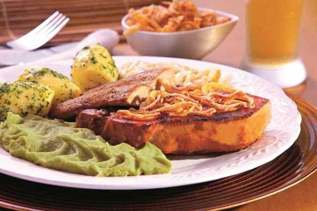 - Kassler (Bisteca de porco, purê de ervilha, batatas cozidas, chucrute e lingüiça branca) – R$ 119 – serve duas pessoas