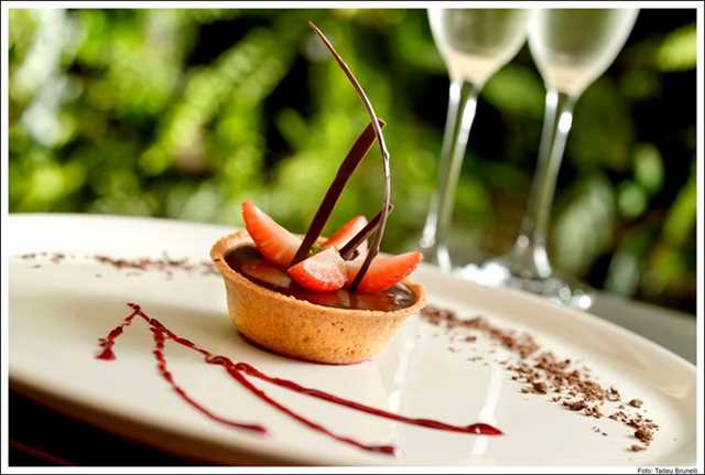 Para o dia dos Namorados, o elegante Kaá preparou uma sobremesa exclusiva e harmonizada pelo sommelier da casa, Luis Antonio Perroud. Para a sexta dia 12 de junho, o restaurante franco-brasileiro desenvolveu a torta de chocolate com especiarias ao creme de bacuri – R$24,00 harmonizada com o espumante brasileiro Guatambu Rosé – R$21,00 (a taça) e R$139,00 (a garrafa). O menu romântico conta com entrada e principal afrodisíacos como espeto de vieiras grelhadas sobre sagu de alho-poró e emulsão de espumante Façon Décima – Serra Gaúcha – R$63,00 e Belle Époque/Rossini. Para o principal, filés de linguado com batata röstie, foie gras e molho de trufa negra – R$93,00.