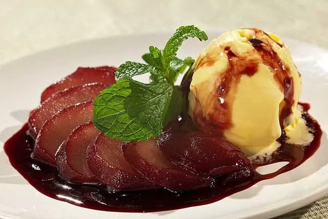 | Pêras ao vinho com sorvete de creme - menu jantar |