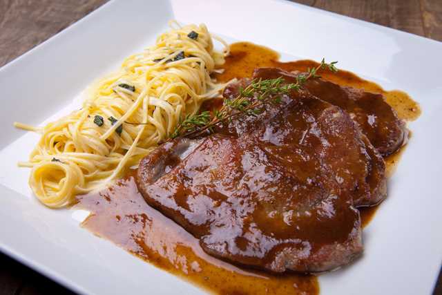 O Menu da casa é recheado e vai direto ao ponto. Para os que optam em frequentar a casa no horário de almoço, invista no menu executivo, que acontece de terça à sexta. Por sugestão do chef da trattoria, “empratamos” uma entrada leve e colorida, o Tartar de salmão com folhas verdes - perfeito para os dias quentes - R$32,00. Logo nos chegou à mesa o suculento Saltimbocca com capellini na manteiga e sálvia– R$47,00. Prato despretensioso, onde os ingredientes permeiam bem a massa fresca da casa de Pier Paolo. E para terminar, uma sobremesa com cara de trattoria o pudim de pão caramelado - R$ 14,00.