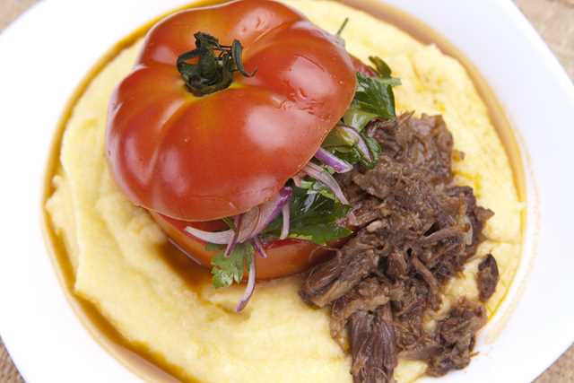 vinho do porto e figos grelhados delicadamente. O prato de textura leve nos apetece só de olhar, supersaboroso e aromático o prato desapareceu rápido da mesa - R$ 22,00. De principal fomos com a famosa porchetta que acompanha salada verde e pão italiano. Suculenta - a estrela do almoço faz juz a sua fama, farta e bem perfumada apresentou maciez e equilíbrio nos temperos - R$35,00. E por fim nos chegou à mesa a rabada com polenta italiana cremosa - Prato de apresentação impecável, a polenta de consistência leve era possível sentir o sabor do milho no final e a carne da rabada estava desmanchando - todo aquele sabor passeava persistindo em ficar na boca. (é de comer rezando!) - R$ 45,00.