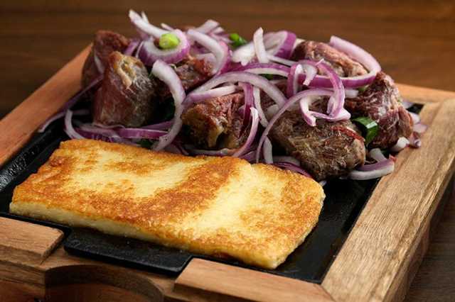 | Carne de sol acebolada com queijo coalho |