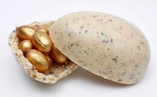 Ovo Velvet – assinado Marina – ovo com casca de chocolate recheada de trufa de caramelo com flor de sal - 450 (R$ 84)