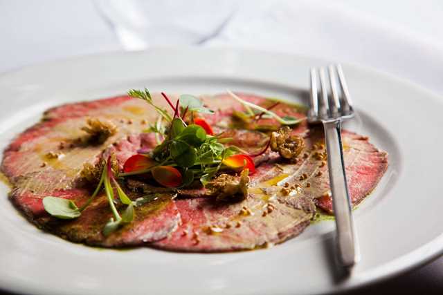 Carpaccio de Kobe Beef defumado com mini brotos – R$ 40