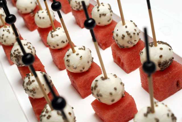 As entradas são coloridas, inovadoras e trazem contraste e texturas no paladar. Squares de melancia com boursin e chia é um exemplo deles. Já o muffin de milho verde com tartar de galinha caipira e purê de pequi traz minúcias delicadas com toque de brasilidade regional.