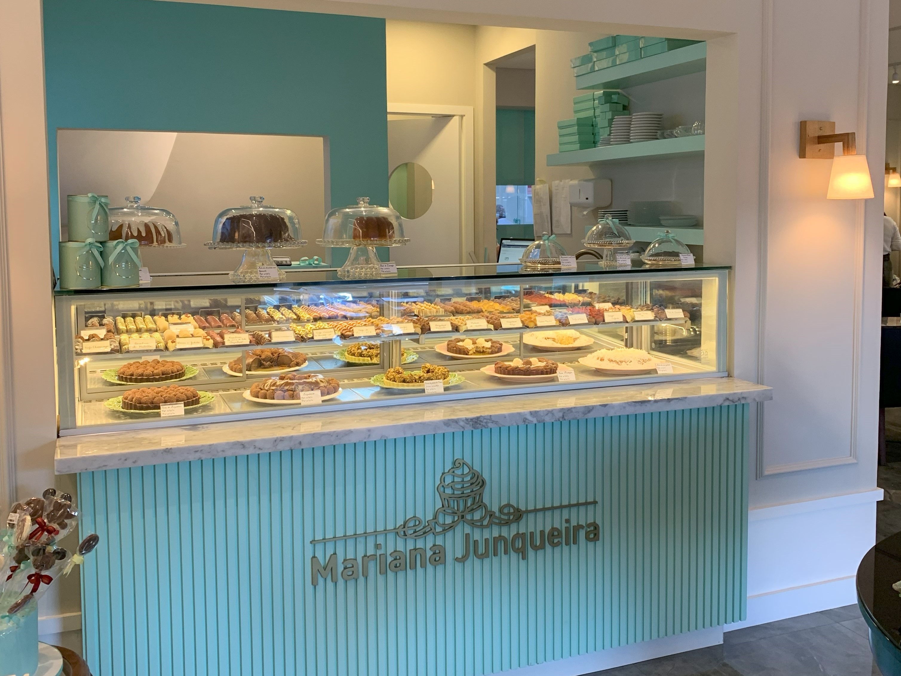 Logo na entrada alguns exemplares de xícaras de porcelana, caixas decorativas cheio de detalhes minuciosos, lembranças que acompanham bombons, que mais parecem pequenas joias. Nas prateleiras pratos, suportes de bolo, além do destaque da boleira de murano refinadíssima com todos os superlativos. "Ter uma coleção Home & TableWare foi um passo importante da nossa estratégia. Desta forma nossos clientes conseguem um atendimento completo, em um só lugar podem comprar o bolo, doces e uma peça exclusiva para servir e presentear! É a experiência do cliente elevada! Gosto assim!", completa Mariana.