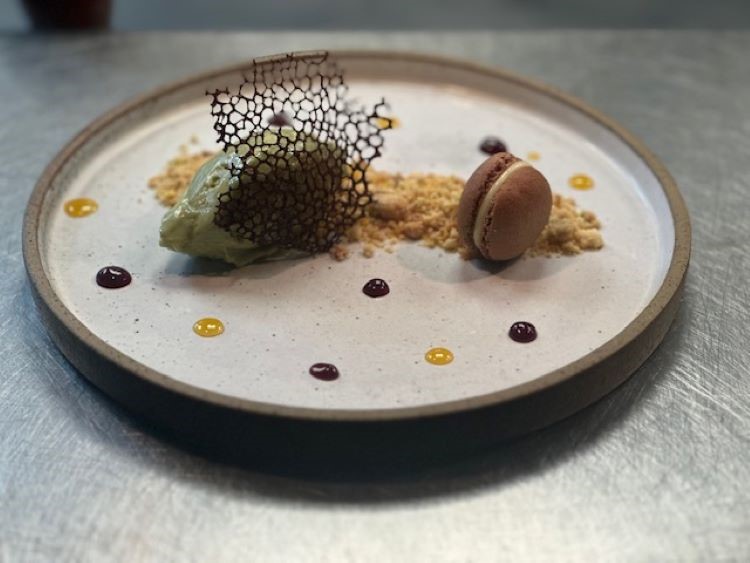 Para celebrar o Dia Internacional da Mulher, o chef Fábio, criou a sobremesa que fica disponível na casa até o domingo dia 10/03. Trata-se da Mousse de Pistache e chocolate branco com crumble cítrico de castanhas. ( foto acima)