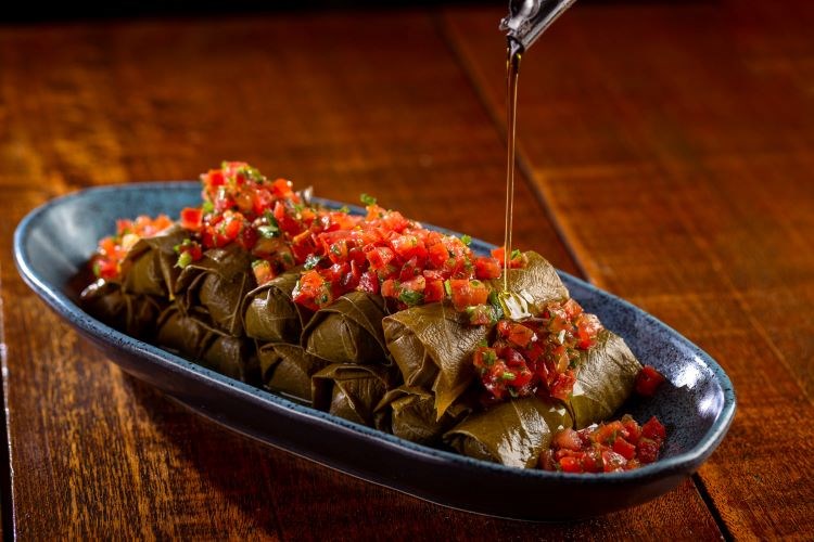 A Kafta bovina chega à mesa com 200gr de suculência com pão folha e vinagrete acompanhando. Ponto da carne e temperos perfeitos. Outro prato que não passa despercebido são os Charutinhos de folha de uva. A receita do Zain em especial ganha mais carne do que arroz na sua proporção, que é adorável. É macio, substancioso com tempero na medida. Comeria a porção toda...