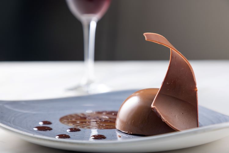 Para finalizar, a sobremesa traz o Bombom de Chocolate 33% ao Leite, recheado com creme de tangerina e praliné de amêndoas (R$ 55). O bombom, sobretudo, equilibra a doçura do chocolate com a acidez da tangerina e o crocante das amêndoas, traz textura ao paladar.