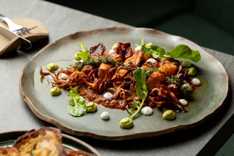 Nos pratos principais, a chef apresenta combinações ousadas e elegantes. O Peixe e Avelã (R$ 95) vem grelhado sobre um creme de couve-flor defumada, com brócolis caipira e velouté de avelã. Já as Lulinhas grelhadas (R$ 140), servidas com romesco defumado, aioli de limão e creme de avocado, são um convite ao frescor com camadas de sabor. O Porco e Polvo (R$ 159), talvez o mais expressivo dos novos pratos, traz um arroz caldoso com tomatinhos, polvo grelhado e glace de rapadura — uma ode ao terroir mineiro com toques do litoral.