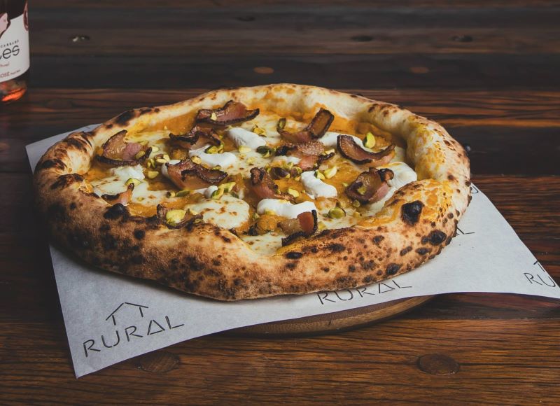 Os sabores vão de combinações intensas a composições mais delicadas. Um exemplo é a pizza da Rural Pizzeria (foto acima), que representa a Basilicata com creme de abóbora assada na lenha, guanciale, caciocavallo defumado, creme de ricota e pistache. Já a La Crosta homenageia a Lombardia com grana padano, cebola caramelizada ao espumante Franciacorta, mascarpone e bresaola. Para os fãs de tradição, a Leggera traz a Campania com tomate San Marzano DOP, aliche e azeitonas italianas. E a .it Pizza aposta na sofisticação do Piemonte, com dois tipos de gorgonzola, lascas de pera e nozes.