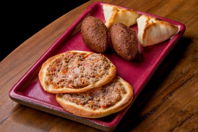 O cardápio segue a linha das demais unidades, com pratos pensados para compartilhar. Entre os destaques estão o Homus com tiras de mignon, o Samboussak – pasteizinhos árabes recheados de queijo ou carne –, e os Charutos vegetarianos. As pastas Mhammara e Chancliche, servidas com o tradicional pão Saj, reforçam a identidade da casa.