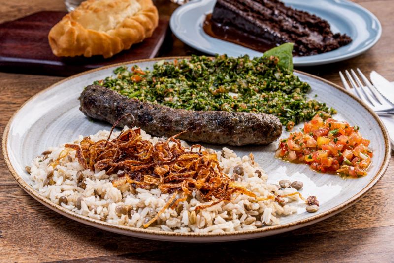 Nos pratos individuais, a Mussaka e o Chish barak invertido conquistam pela combinação de tradição e criatividade. A Kafta de cordeiro acompanhada das batatas à moda libanesa é outro clássico que traduz a essência da culinária árabe. Para adoçar, o Malabie, manjar-branco com compota de damasco, e o icônico Bolo da Teta, homenagem às avós árabes, encerram a experiência.
