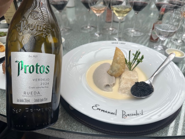 Na degustação, o Protos Verdejo mostrou frescor e acidez vibrante, com notas cítricas e tropicais no nariz e final redondo em boca, harmonizando de forma impecável com o robalo ao vapor servido com creme de champagne, purê de inhame e caviar mujol. O Protos Aire Rosé, delicado e elegante, trouxe aromas de frutas vermelhas frescas e flores brancas, combinando com a casquinha de siri e camarão ao tempero da Bahia. O Protos 27 – Safra 2021 revelou fruta negra madura, especiarias e leve toque de baunilha, com taninos macios e boa estrutura. O Protos Reserva – Safra 2020 destacou-se pela complexidade de frutas em compota, couro e especiarias, equilibrando corpo e madeira. Já o Protos Gran Reserva – Safra 2017, ícone da casa e favorito dos presentes, arrebatou com bouquet sofisticado de frutas secas, tabaco, cacau e notas balsâmicas, revelando profundidade e persistência notáveis.