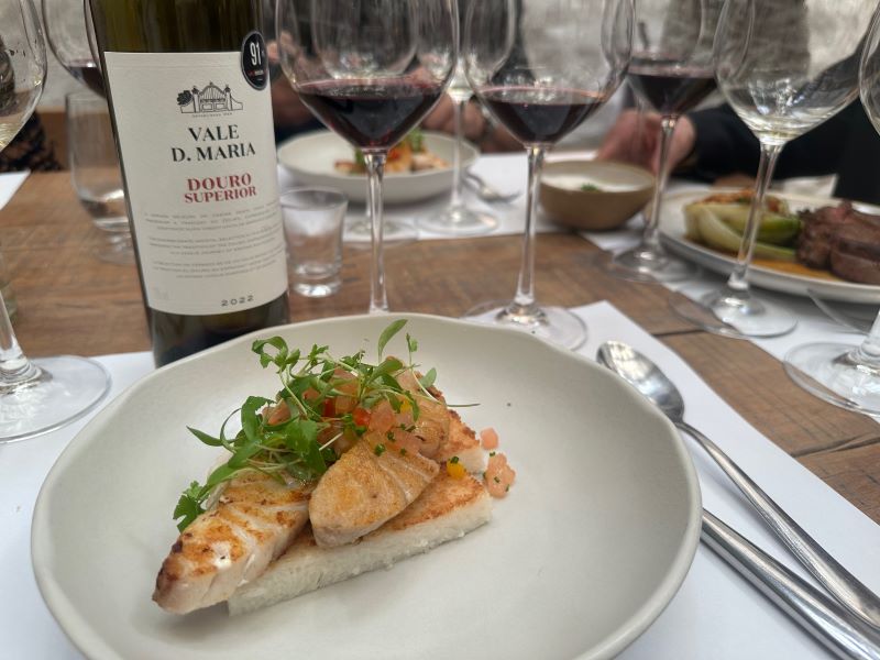 Na sequência, os jornalistas degustaram dois brancos da região dos Vinhos Verdes: o Aveleda Solos de Xisto Alvarinho, 100% Alvarinho, que revela notas cítricas e minerais com frescor marcante e boca elegante; e o Aveleda Parcela do Roseiral, com passagem por barrica, que apresenta aromas florais e de frutas brancas aliados a uma textura cremosa e complexa (perfeitos com peixes ou frutos do mar para a celebração da Páscoa). Do Douro vieram os tintos de grande personalidade: o Quinta Vale D. Maria Douro Superior Tinto, que expressa frutas vermelhas maduras, especiarias e taninos firmes equilibrados por frescor; e o Quinta Vale D. Maria Vinhas Velhas, elaborado a partir de 41 castas de vinhas com mais de 60 anos, que entrega profundidade aromática, notas de ameixa, cacau e especiarias, com estrutura imponente e final prolongado (acompanha com cordeiro assado).