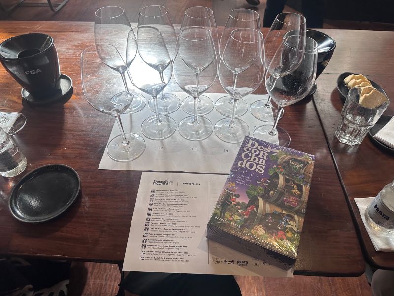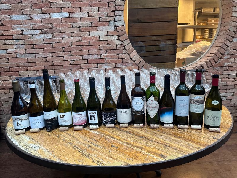 Entre os brancos, destacaram-se o Kosten Sauvignon Blanc 2024 (Ventisqueiro, Chile, 96 pontos), o Sabina Entre Serras Sauvignon Blanc 2025 (Sacramentos, Brasil, 95 pontos), o Bouza Parcela Única B29 Albariño 2025 (Uruguai, 96 pontos), o Santa Rita Gran Chiriquí Chardonnay 2023 (Chile, 96 pontos) e o Cara Sur Parcela La Totora 2024 (Argentina, 95 pontos). De perfil fresco e acidez elevada, o Chardonnay da Santa Rita foi nosso favorito. Cada Vinho teve seu enólogo ou presentante de cada marca para falar um pouco de como foi o trabalho com seus vinhos.
